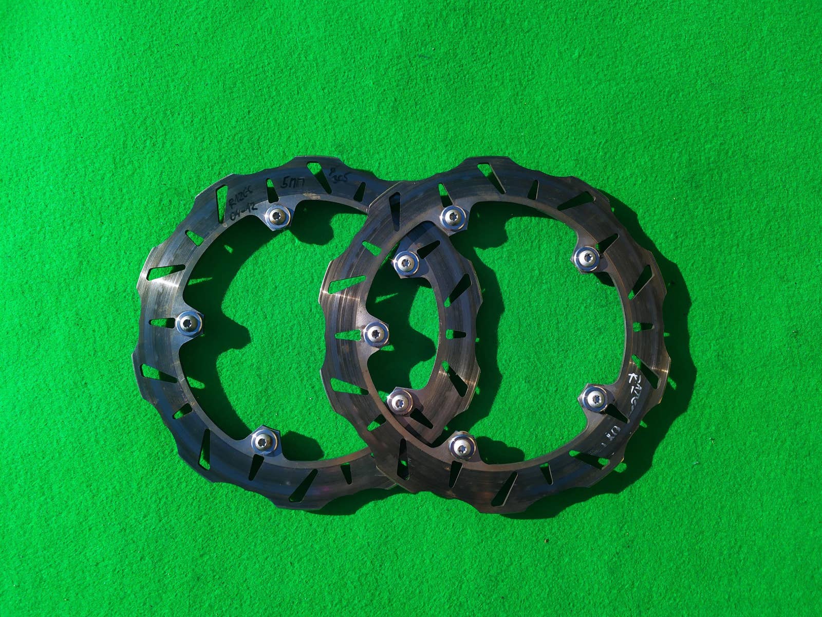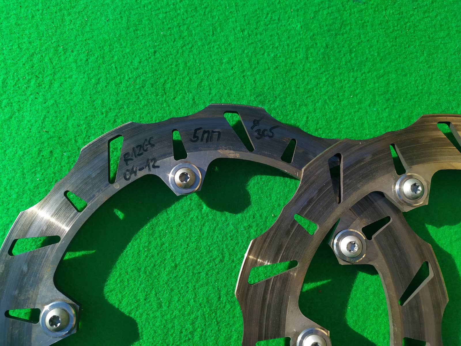 LEVÝ A PRAVÝ PŘEDNÍ BRZDOVÝ KOTOUČ R 1200 GS , ROK 2004-2012 , TLOUŠŤKA 5 MM , PRŮMĚR 305 MM , VČETNĚ DISTANCÍ A ŠROUBŮ NA UCHYCENÍ , ROVNÉ A NEPOŠKOZENÉ