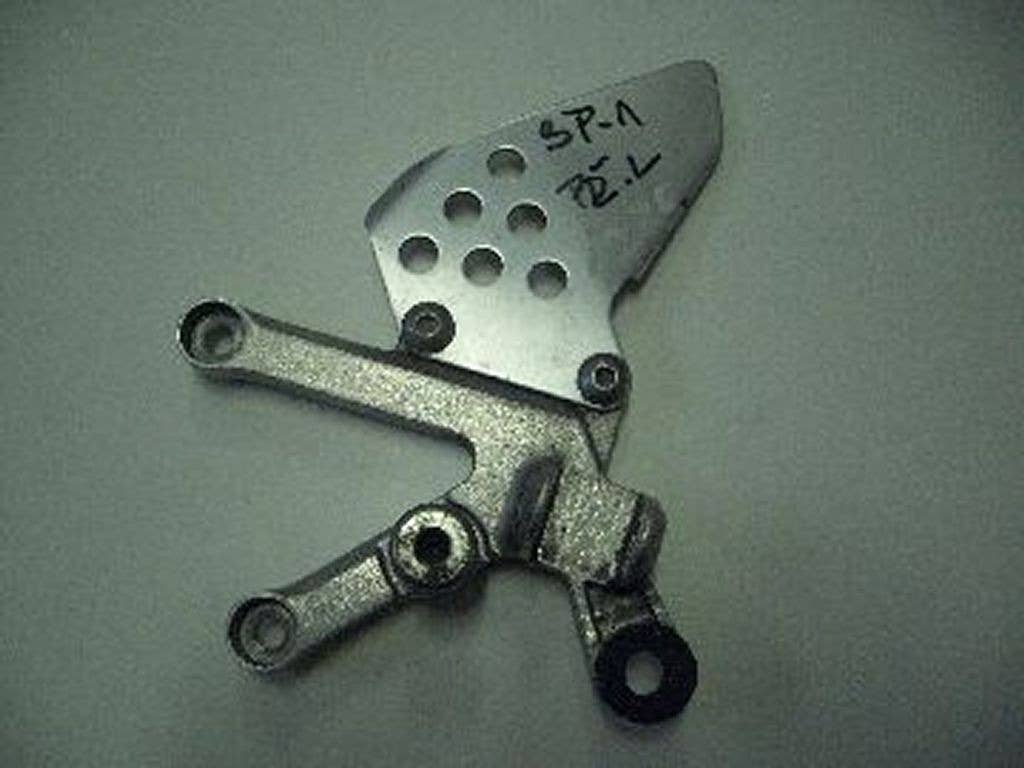 LEVÁ PŘEDNÍ ZÁKLADNA VTR 1000 SP1 , ROK 2000-2001 , VAŘENÝ ÚCHYT NA VÝFUK