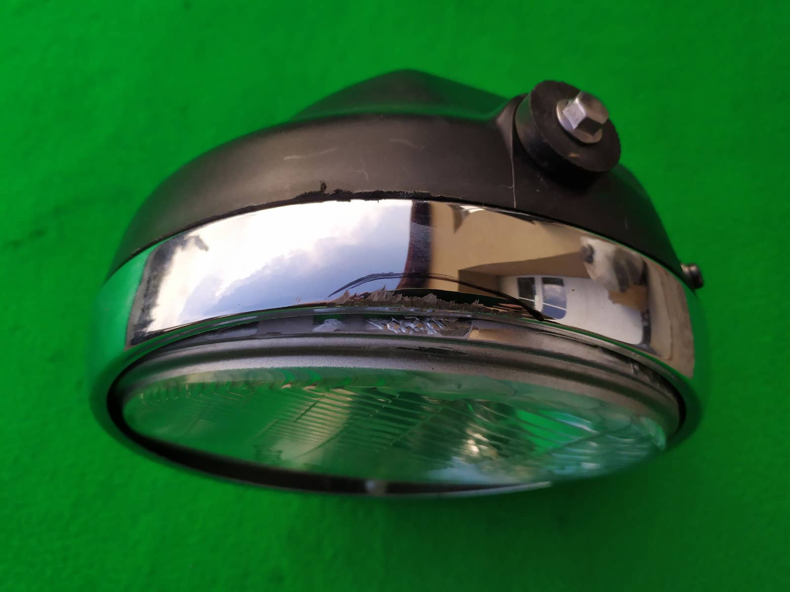 ORIGINÁLNÍ PŘEDNÍ SVĚTLO XJR 1300 , ROK 2007+ , ODŘENÁ CHROMOVANÁ OBROUČKA A SPODNÍ MISKA