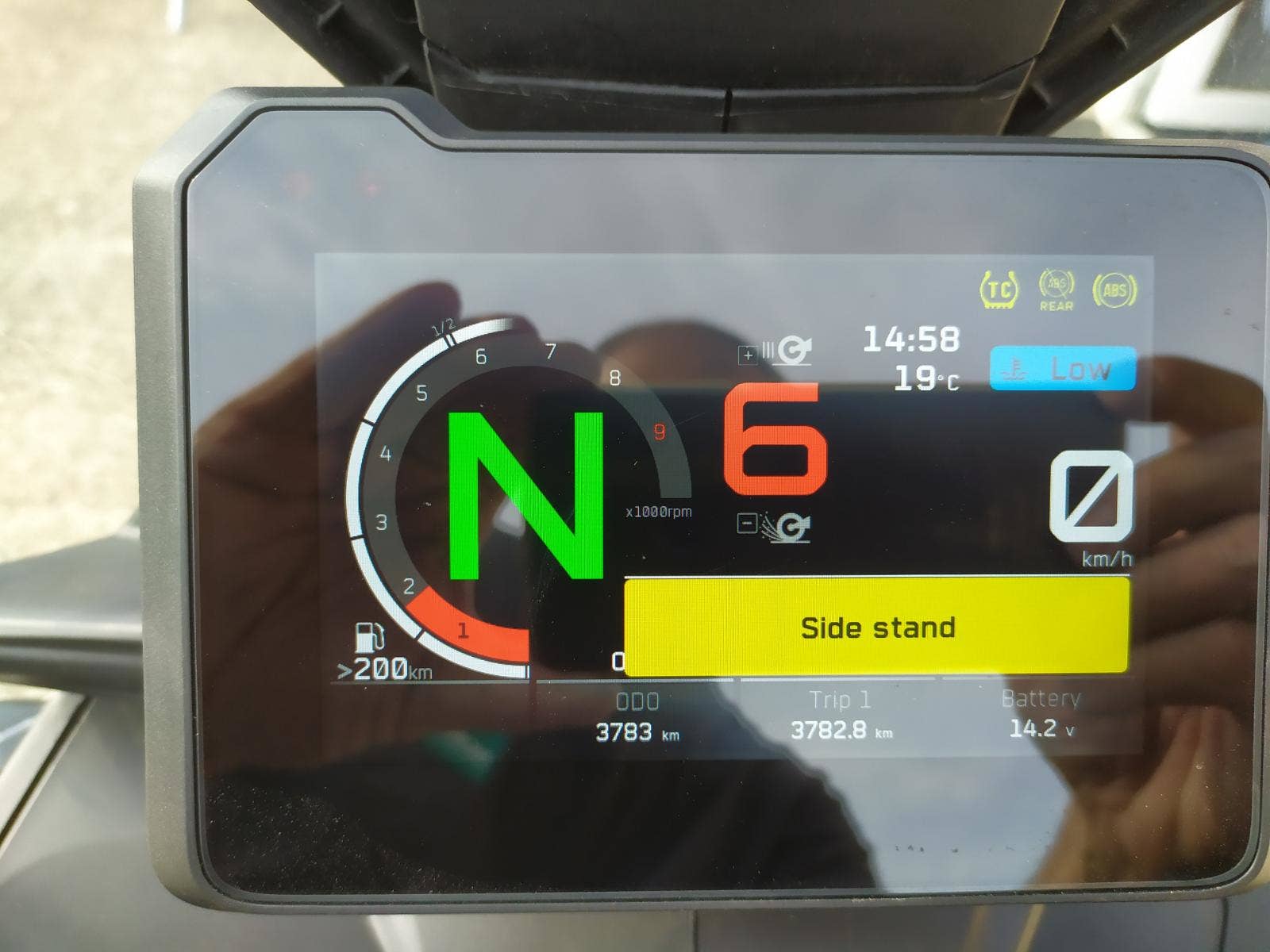 stav nového motocyklu, ABS, quick shifter, vyhřívané hefty, Tech Pack, velký kryt pod motorem, najeto 3700 km, dovoz doklady na přihlášení, možný odpočet DPH, cena bez DPH 177.686, Kč